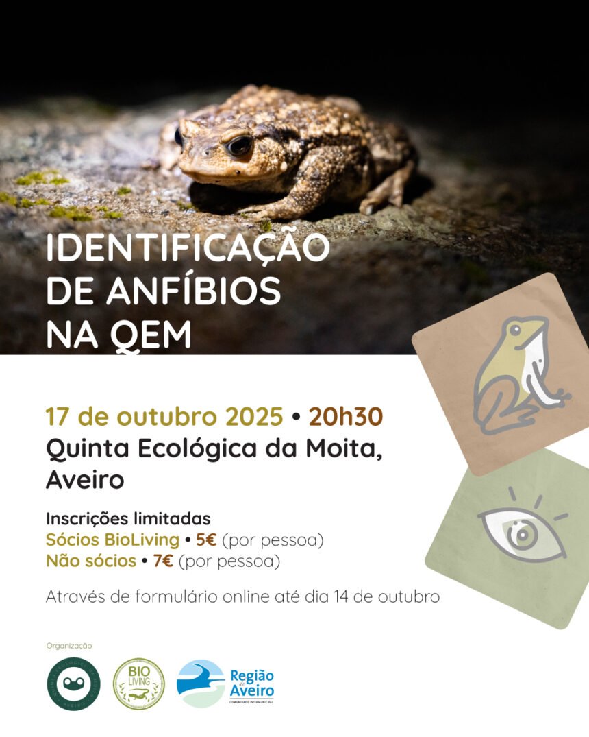 A Quinta Ecológica da Moita (QEM), em Oliveirinha, Aveiro, abre as portas à noite para uma experiência única de contacto com a natureza. No próximo dia 17 de outubro, às 20h30, realiza-se uma Noite de Identificação de Anfíbios, uma atividade guiada dedicada à descoberta das espécies que habitam o bosque da Quinta.