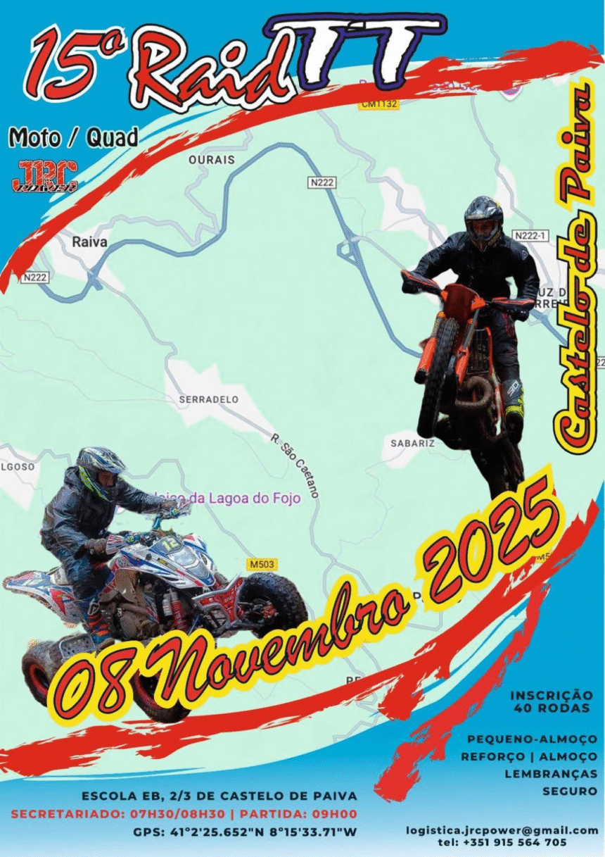 Castelo de Paiva prepara-se para voltar a acolher o Passeio TT Turístico, um dos acontecimentos mais esperados pelos entusiastas do off-road. A 15.ª versão da atividade, promovida pela associação JRC Power, acontece no sábado, dia 8 de novembro, e reunirá mais de duzentos participantes provenientes de diversas zonas do território nacional.