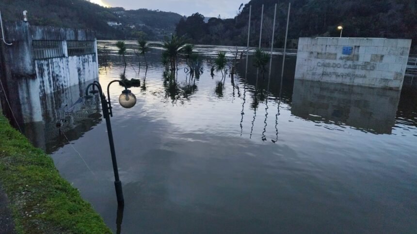 As chuvas persistentes na Península Ibérica atingiram Castelo de Paiva; a zona da Praia do Castelo, em Fornos, encontra-se atualmente debaixo de água.