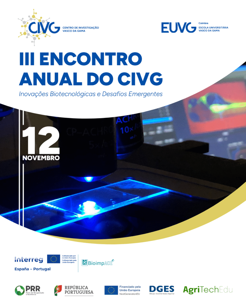 Coimbra – O Centro de Investigação Vasco da Gama (CIVG) anuncia a realização do seu III Encontro Anual, sob o tema “Inovações Biotecnológicas e Desafios Emergentes”, a decorrer a 12 de novembro de 2025, nas instalações da Escola Universitária Vasco da Gama (EUVG), em Coimbra.